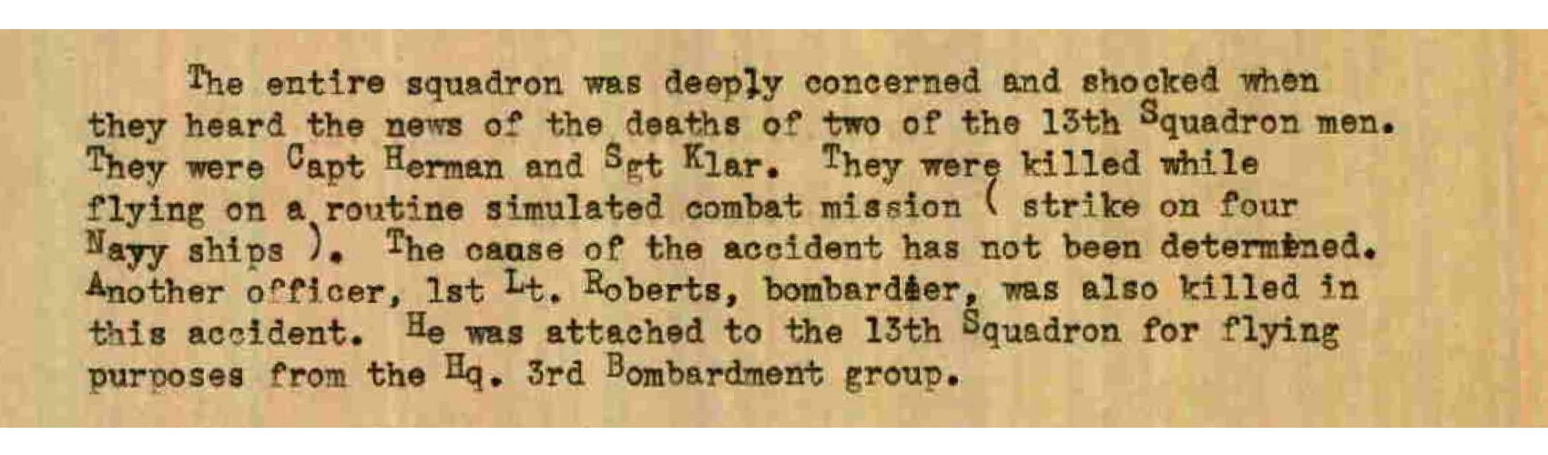 13TH BOMB SQUADRON AIRCRAFT ACCIDENT JULY 26, 1948