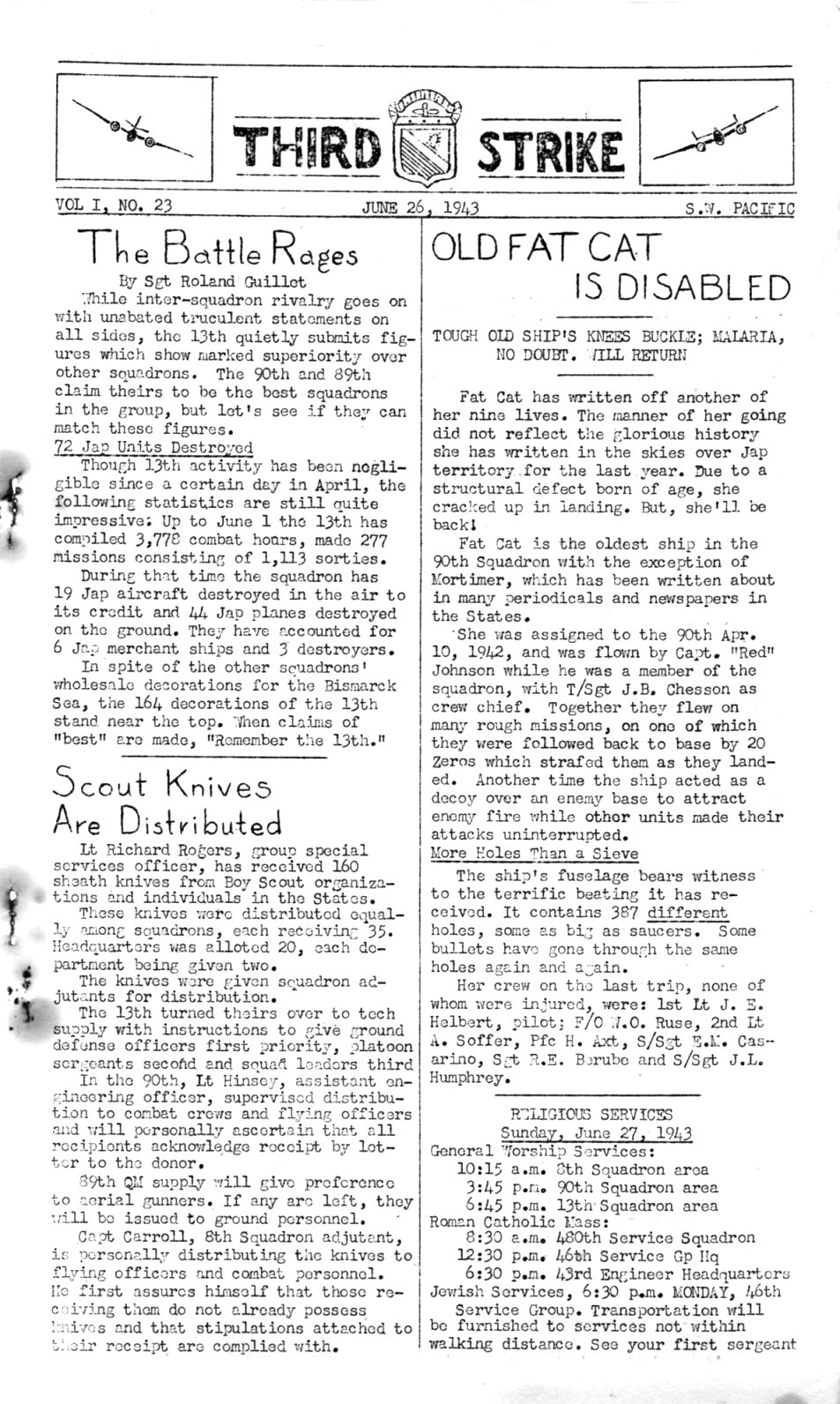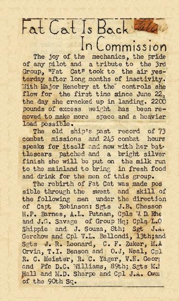 NEXT TO LAST FLIGHT OF FAT CAT - ANDY WEIGEL - 8TH SQUADRON