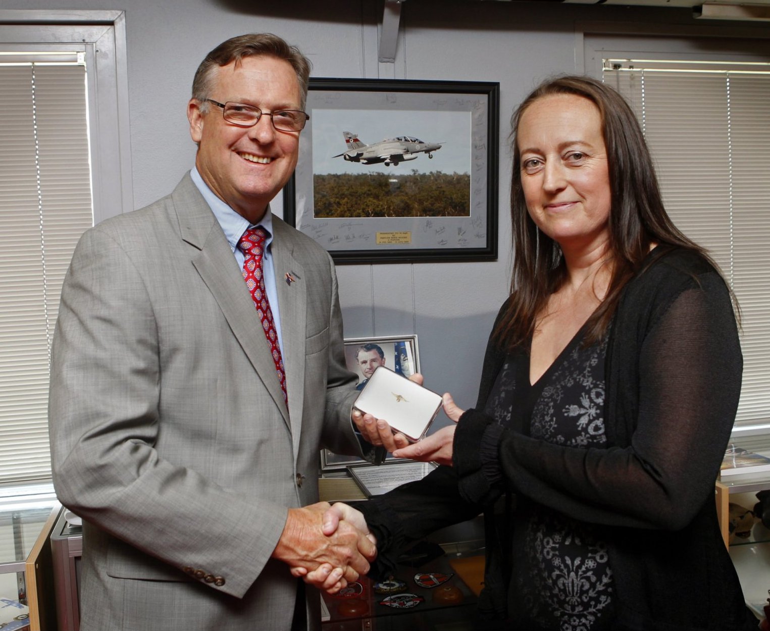 Tunny, met Mrs Turnbull and CO 76 Squadron Wing Commander Christopher Hake at the squadron headquarters.